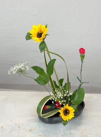 ひまわり レースフラワー スプレーカーネーション ニューサイラン レモンリーフ